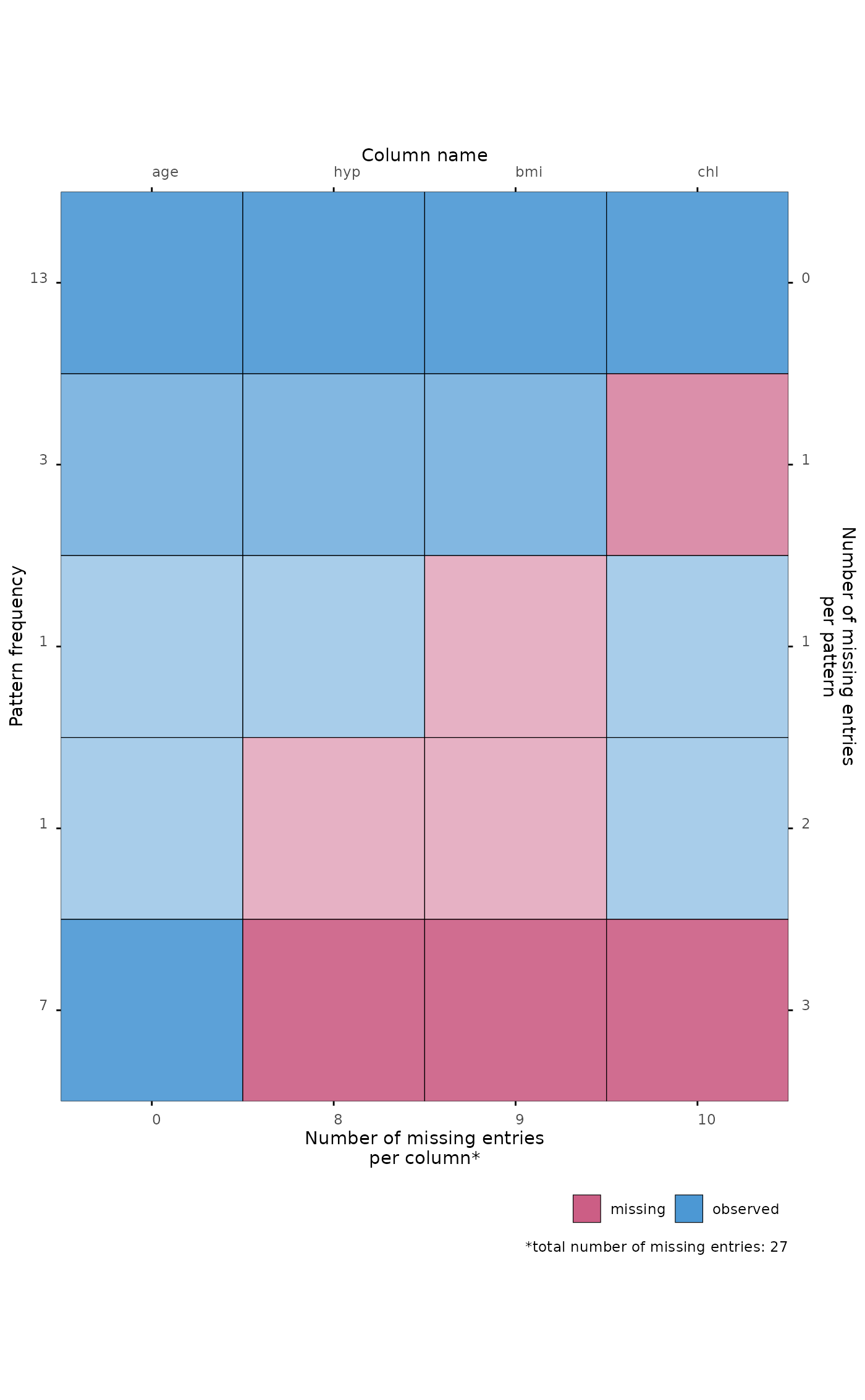 plot_pattern(mice::nhanes)